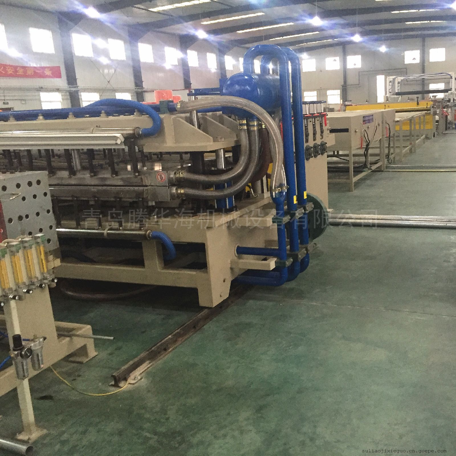 青岛腾华海机械设备有限公司生产塑料板材设备、异型材设备、管材等设备。其PP/PC中空格子板设备生产的中空格子板成品宽度700mm-2100mm,厚度:2-30mm,生产线性能: