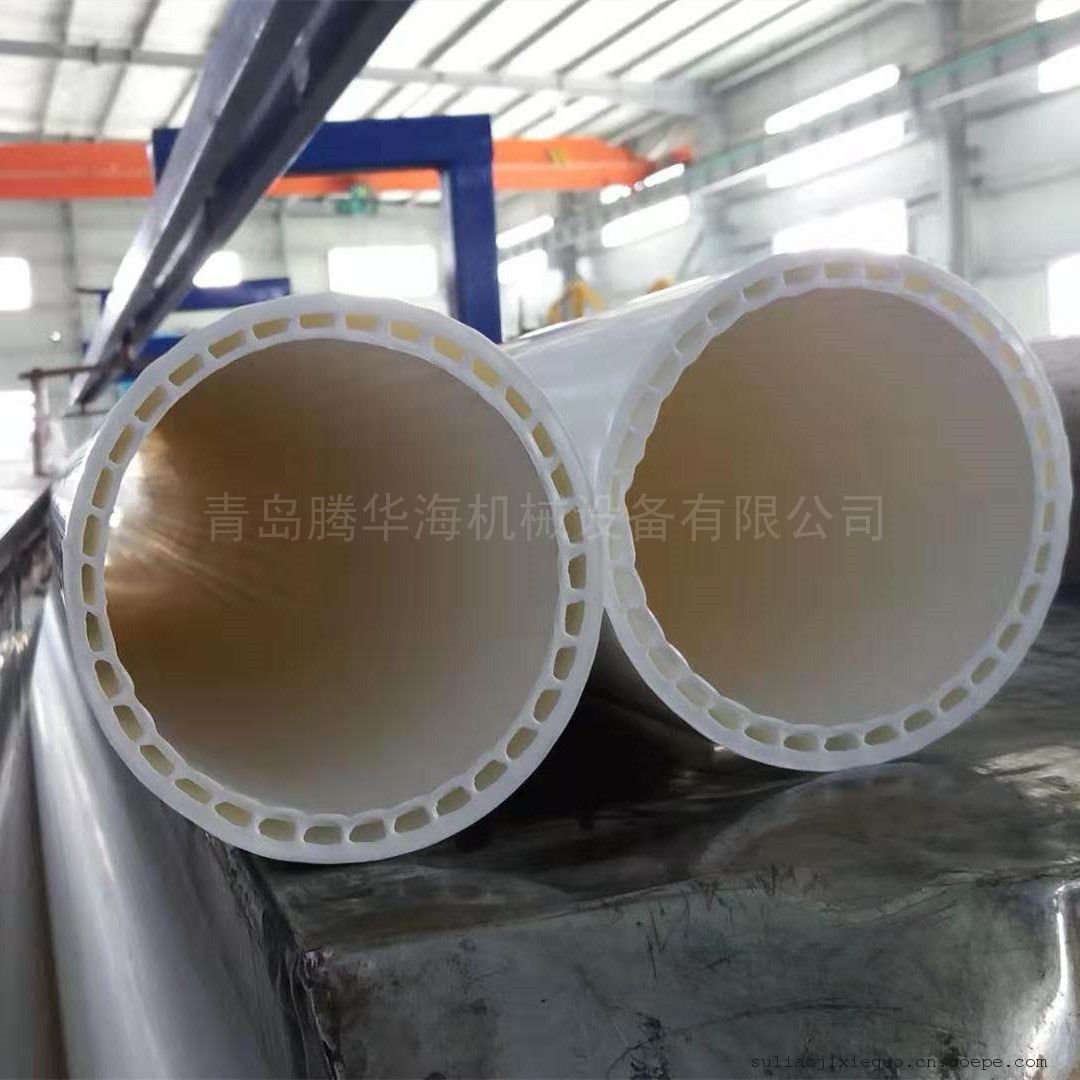 中空壁内螺旋消音管设备生产的中空螺旋消音管包括外层和管道内层,外层和内层之间开有贯穿管道的空心孔,管道内壁上等间距设有6~8根螺旋凸筋,可迫使水流沿着管道内壁旋转流下,可有效降低管道受水流冲击导致的纵向破裂现象,降低水流的噪音。管道内壁不易结垢,水流畅通,不易阻塞。