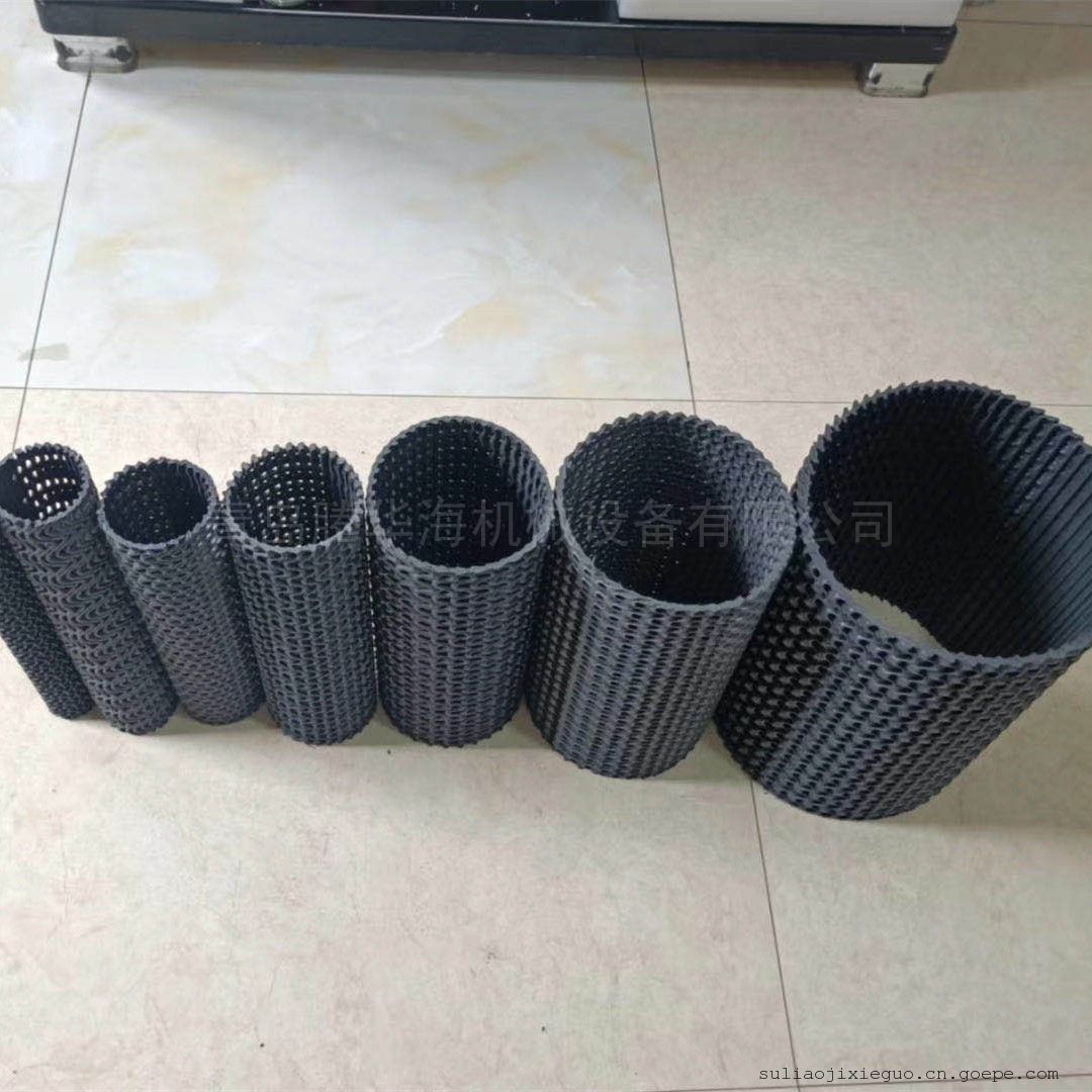 三、硬式透水管设备,塑料盲管设备生产流程:原料→自动上料机→高效单螺杆挤出机→成形机头及成型模具→冷却定型水箱→牵引机→切割机→翻转平台四、产品特性1.底部为无孔部分,内壁较为光滑,利于集水迅速排出;2.独特的牙山构造使透水孔位于牙山之下,利于保护透水孔不被泥砂堵塞;3.耐候性优越,抗化学腐蚀能力强,对土体无污染,使用年限长;4.硬式透水管设备配有管接管堵和三通,便于施工且更有利于排水系统的稳定;5.抗冲击能力强,无论压力多大,均不会破裂