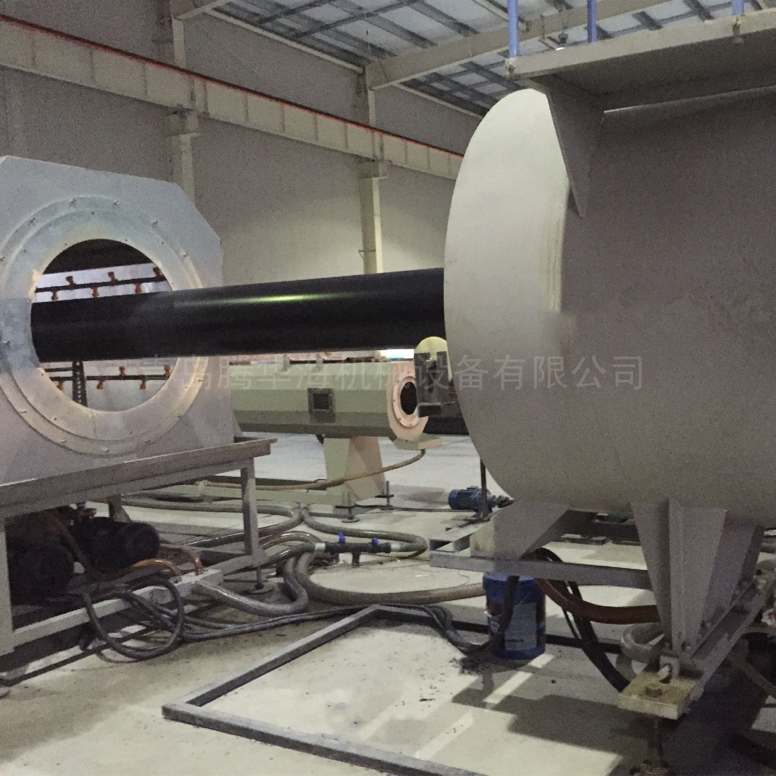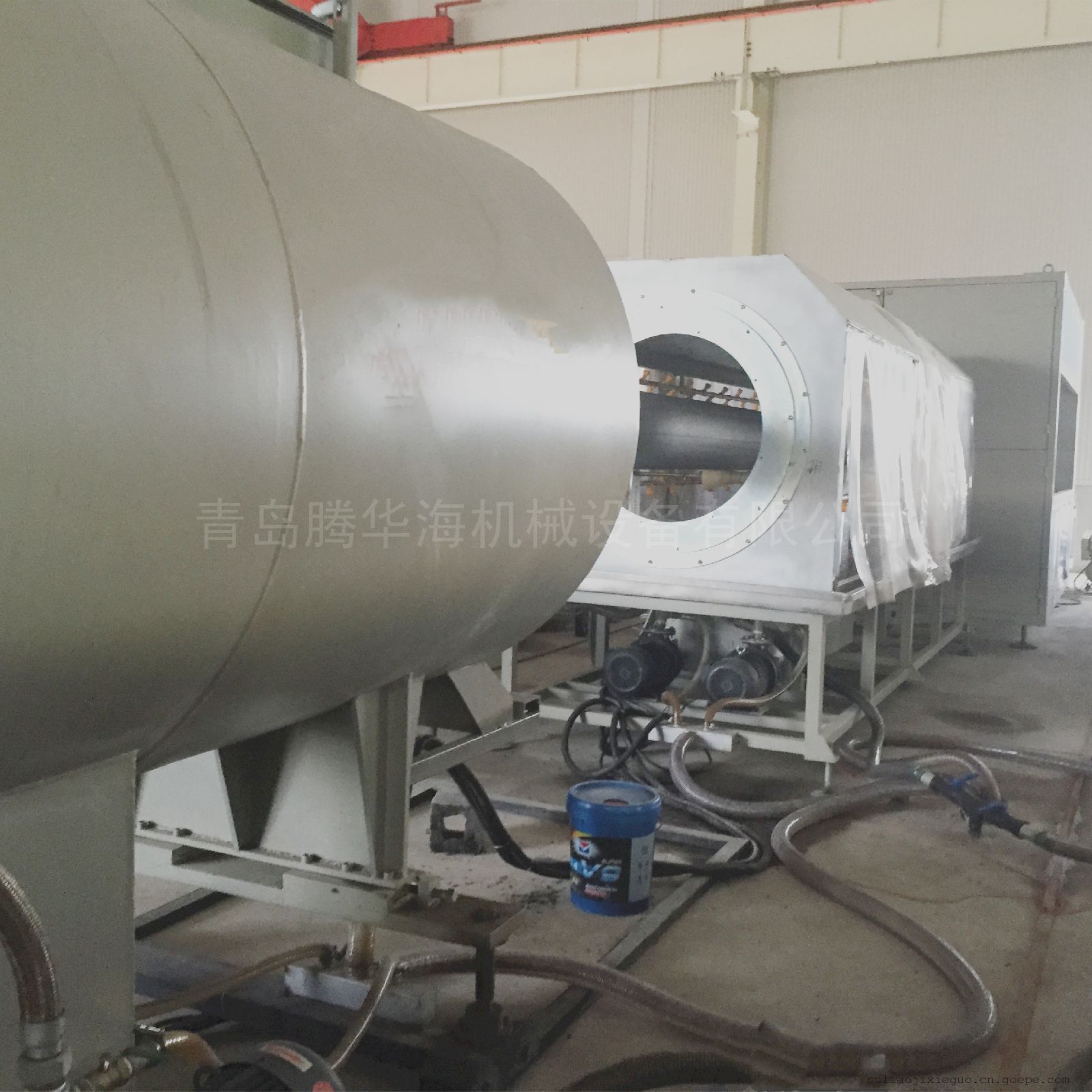 4、PE管设备真空定径水箱:桶身采用高硬度优质不锈钢板,先进的水循环、高压冷却系统,真空度调节装置和精确的水温水位自动控制系统,精确的锡青铜定径套具有管材冷却速度快,定型快等特点,上下左右可实现三维调整可根据生产管材的规格和速度,提供不同长度和数量的冷却配置。