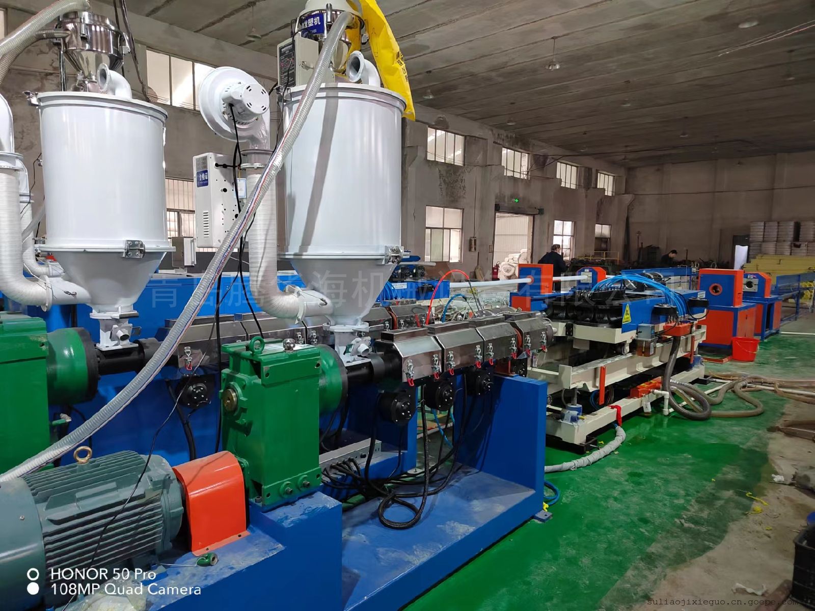 单壁波纹管生产线设备:是以PVC或MPP为主要原料,经挤出吹塑而成。单壁波纹管的内、外表面均为波纹状。双壁波纹管:是一种具有环状结构外壁和平滑内壁的新型管材,主要应用于工作压力在0.6MPa以下的大型输水,供水,排水,排污,排气,地铁通风,矿井通风,农田灌溉等。PVC单壁波纹管利用其环形槽的结构,因此使管子具有刚中带柔的特点,可用于输送某些液体和气体以及作为预埋电线的套管。产品规格:DN80—DN200。其设备组成部分包括塑料挤出机、机头模具、成型机、水箱、牵引机、切割几等组成。埋地式高压电力电缆用MPP单壁波纹管是采用改性增强聚丙烯为主要原料,再配以其它功能性助剂挤出定型而成的单壁波纹管材,其具具有优良的环刚度和耐热性、柔韧性,是电力电缆的理想保护管道,主要应用于开挖领域。