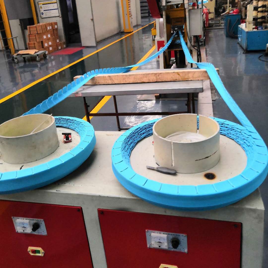 一出二钢铁包装塑料护角设备主要用于生产钢卷的护角包装,应用于钢厂及彩钢钢卷的包装。整条生产线采用先进的设计方法,采用在线才冲裁,定长裁断,自动化程度高。经过青岛塑料挤出机械有限公司的研究与开发,由以前的每分钟两米提速到现在每分钟10米,熟练后整条生产线只需要一人操作,快捷方便,采用一出二挤出模式。一出二钢铁包装塑料护角设备是青岛众诺塑料机械有限公司制作钢卷包边护角线设备、包装塑料保护板、端护板、侧护板设备。一出二钢铁包装塑料护角设备由塑料挤出机、自动真空上料机、除湿烘干料斗、片材机头、三辊压光机、排辊托冷装置、裁边装置、牵引机、剪切机、排辊输送机、收卷机、冲裁装置、割圆机等组成。公司对一出二钢铁包装塑料护角设备进行免费安装、调试、培训人员,直至生产工人独立操作为止,并提供先进技术配方,实施交钥匙工程。青岛塑料机械有限公司欢迎您来电。
